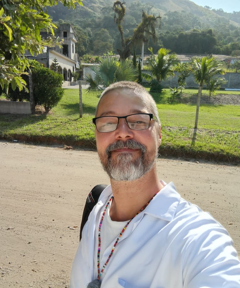 Minha jornada começou nos terreiros e nos atendimentos de fisioterapia, nos ritmos dos atabaques, no lidar diário com a cura e na sabedoria da espiritualidade afro-brasileira. Foi ali, entre ritos sagrados e o tratamento do corpo físico, que aprendi a escutar, não apenas com os ouvidos, mas com a alma. Aprendi que o sagrado se manifesta no concreto, e que o corpo fala atráves de sintomas ,ferramentas de autoconhecimento, espelhos que revelam os movimentos mais profundos do nosso ser. Foi nesse chão firme da tradição que me tornei um sacerdote: um guardião de ritos e um facilitador do diálogo entre o humano e o Divino.